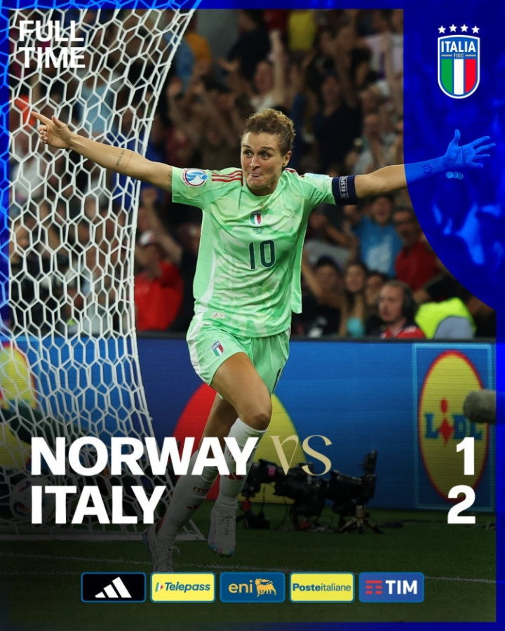 在半决赛意大利女足的对手将是英格兰和瑞典之间的胜者,安德烈-松钦表示:“这些女孩们取得了非凡的成就,功劳属于她们。现在让我们享受此刻,之后我们将开始考虑半决赛。决赛的可能?让我们先享受这一刻的气氛,今天令人激动,这是独一无二的。接下来我们将和下一个对手战斗。”